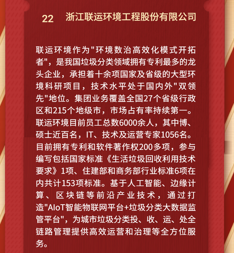 日前,浙江省智慧城市促進(jìn)會(huì)開(kāi)展的“2021年度浙江省智慧城市建設(shè)先進(jìn)單位、創(chuàng)新人物及浙江省智慧城市促進(jìn)會(huì)突出貢獻(xiàn)獎(jiǎng)”評(píng)選活動(dòng)結(jié)果正式揭曉,聯(lián)運(yùn)環(huán)境憑借在垃圾分類智能化監(jiān)管平臺(tái)領(lǐng)域的技術(shù)產(chǎn)品及解決方案的出色表現(xiàn),入選“2021年度浙江省‘智慧城市’先進(jìn)單位”名單。